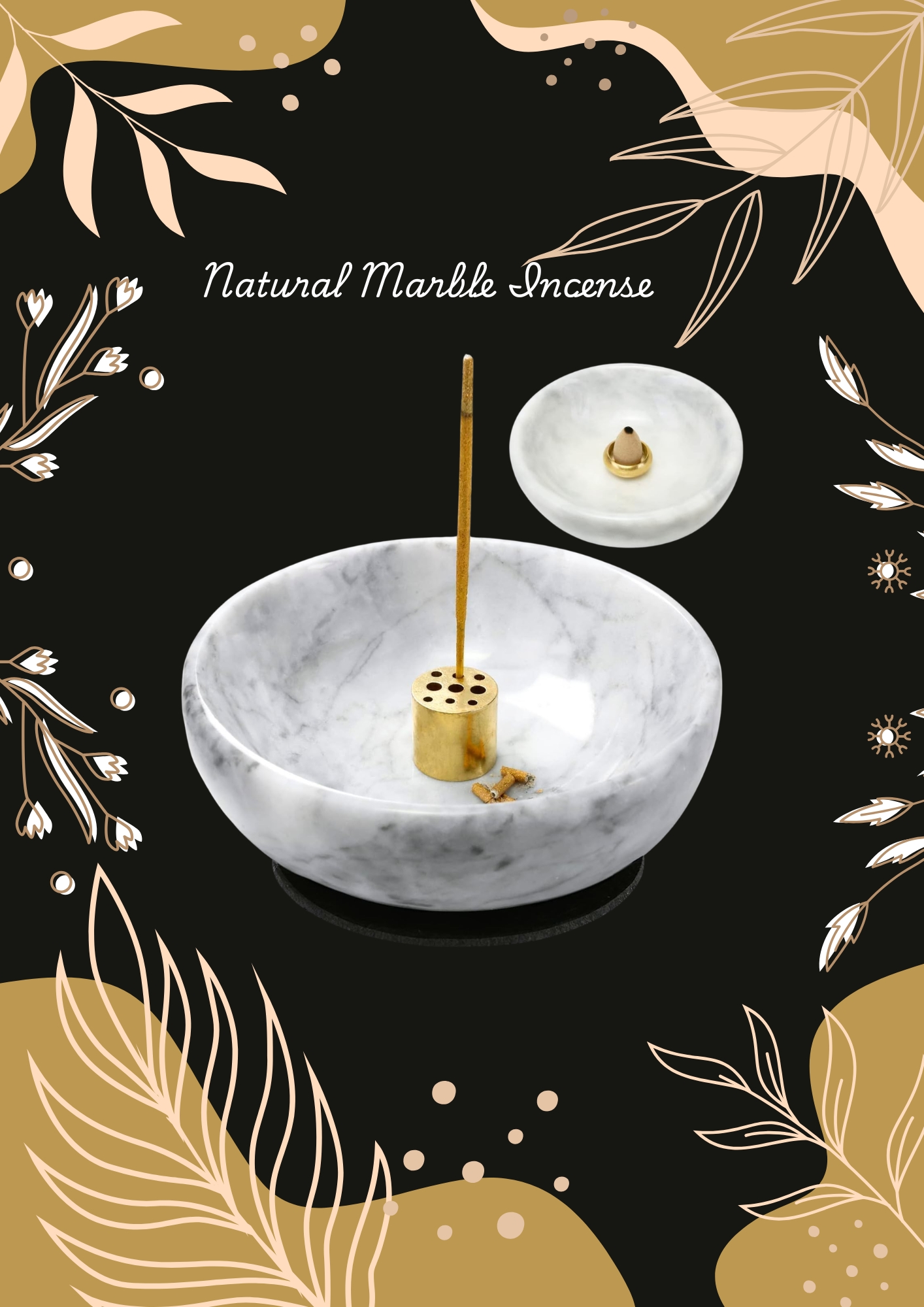 • 【You Will Receive】: 1 pcs marble incense holder, 1 pcs nine-hole incense stick, 1 pcs backflow incense holder , 1 felt pad. White sage bundle and Palo Santo incense stick are not included in the package